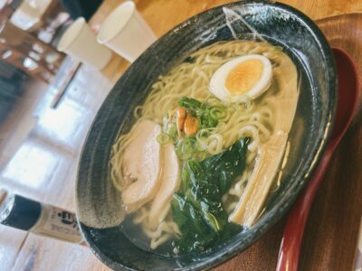 今回も北側エリアにある【田舎のまんま屋 めだかのがっこ】さんにお邪魔して、名物の山塩ラーメンをいただきました。コクがあって優しい塩味のスープが、体に染みわたる〜!ボートを桟橋に係留して歩いて行けるので、釣りの合間のランチにぴったりです!